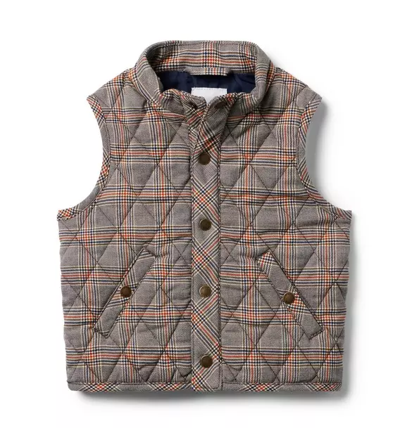 - Go anywhere and everywhere in sartorial style with this menswear-inspired quilted vest. Made in a soft wool-like plaid with a mock neck and pockets for their favorite finds.