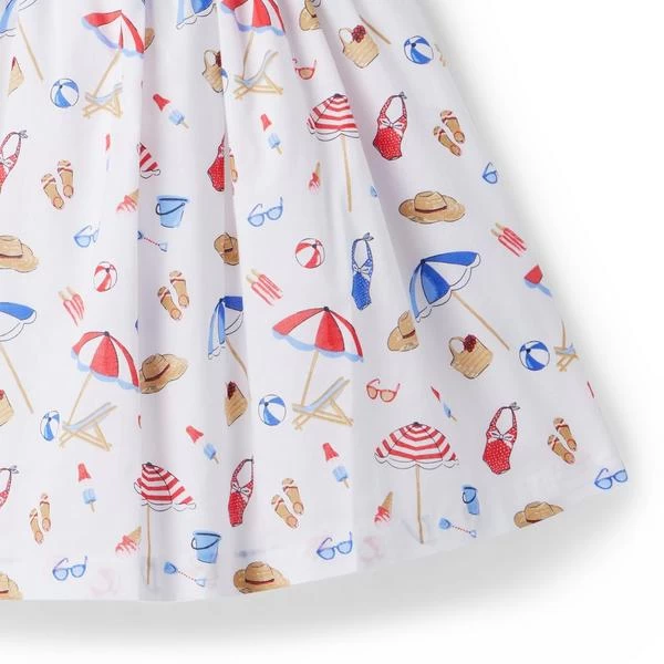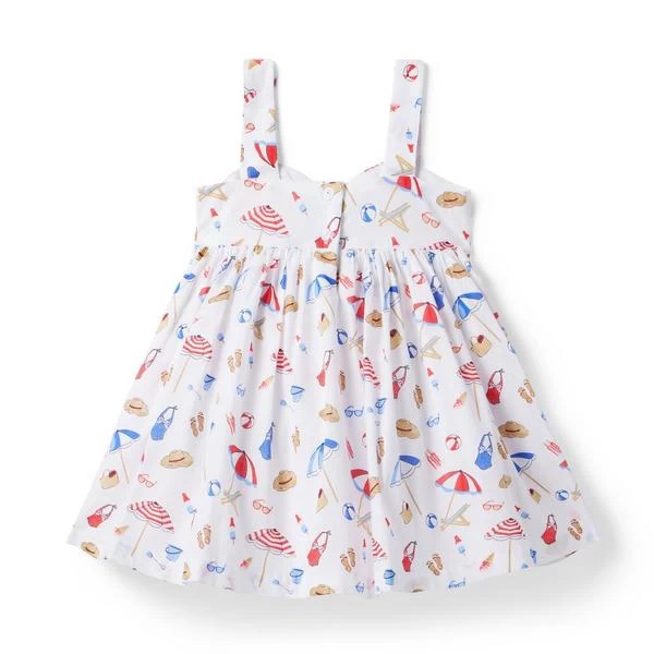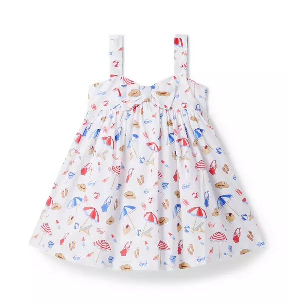 - Life’s a beach in our vacation-ready dress printed with summer icons like sunglasses, popsicles and swimsuits. All topped off with a bow, of course. Perfect for their next sunny day getaway.
