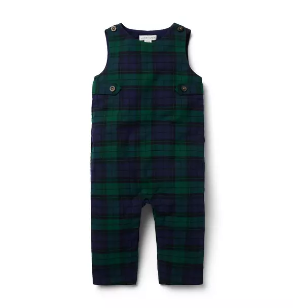 - Festive tartan and soft twill—baby’s first holiday look is squared away in this classic overall with button details. Make it a family moment with our matching tartan pieces.