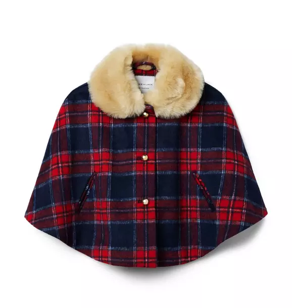 - The layer we love to give (and get), in holiday-ready tartan, with gold dome buttons and a plush faux fur collar. It’s the coziest way to welcome the holidays.